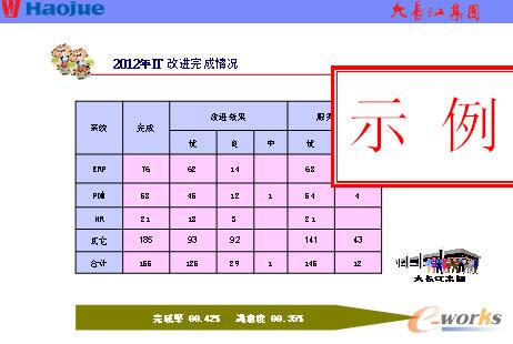 d)將系統應用管理與業務管理相結合:IT系統應用效果需要業務指標來體現,沒有業務成果的IT應用不是成功的IT應用。因此,我們將部分重要業務指標納入到應用管理范圍內,并不斷根據業務變化情況修正要業務考核指標。如:采購計劃執行率、市場配件供應滿足率、流程處理及時性等等。通過對關鍵指標的考核過程,與業務部門一起查找問題存在的原因,找出解決問題的方法并協助實現,有效地促進相關業務管理的改進。如: