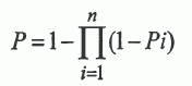 并聯聯接的設備用邏輯與門表示,意思是并聯的幾個設備同時發生故障,系統就會故障。并聯設備組成的系統故障概率P的計算公式是: