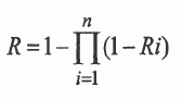 串聯聯接的設備用邏輯或門表示,意思是任何一個設備故障都會引起網絡發生故障或事故。串聯設備組成的系統,其可靠度計算公式如下: