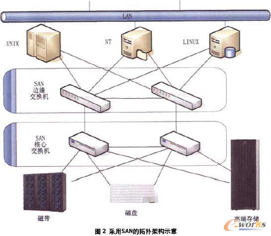 采用SAN的拓撲架構示意圖如圖2所示。