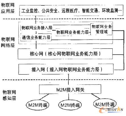 圖1 以M2M業(yè)務(wù)為代表的物聯(lián)網(wǎng)分層模型
