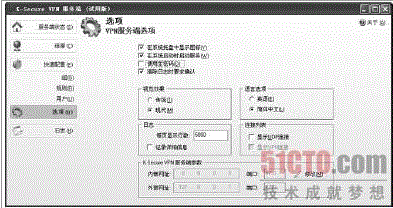 在K-Secure VPN 服務(wù)器程序管理窗口左側(cè)單擊“選項(xiàng)”按鈕,在右側(cè)窗口中(如圖3 所示)選中“使用主密碼”項(xiàng),在彈出窗口中輸入主密碼即可。這樣,當(dāng)調(diào)整K-Secure VPN 配置(如修改規(guī)則)時,就必須輸入該密碼。