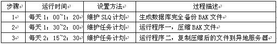 每天凌晨1:00SQL數據庫執行一次完全備份,耗時大概二十分鐘。這是在SQL維護計劃中進行設置,由SQL server自動管理,每天在固定的時間執行一次。