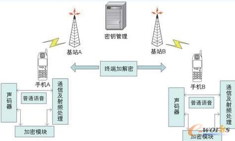 目前在國內三大運營商中,中國電信已經推出基于語音加密的加密通信業務,其基本原理就是在終端中增加加密模塊,實現對語音的加解密,如圖5所示;并且采用加密短信的方式交互密鑰,通話一次一密,密鑰通過密鑰管理中心來分發。除了語音加密,還可以利用該系統,或者重開發新系統對數據類信息(SMS、MMS等)進行加密,從而實現語音/數據的端到端加密。