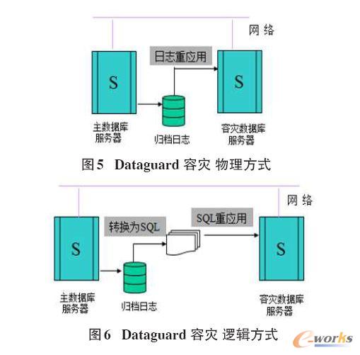 1)物理方式:容災(zāi)庫直接應(yīng)用生產(chǎn)端庫的原樣日志重做,使兩端數(shù)據(jù)庫的數(shù)據(jù)更新相同。在此過程中容災(zāi)庫可轉(zhuǎn)換為只讀狀態(tài),此時獲取生產(chǎn)端日志文件不間斷。容災(zāi)庫的物理結(jié)構(gòu)必須和生產(chǎn)庫相同。初始容災(zāi)庫數(shù)據(jù)通常用Rman工具復(fù)制過來。如圖5。
