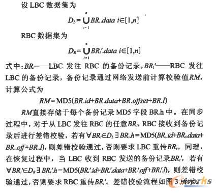 DBS通過管理中心建立災備任務,將LBC需要備份的磁盤分區同步到RBC的存儲中心,并同時將任務信息寫入數據庫服務器。當LBC對應的磁盤數據遭到破壞后,通過管理中心啟動數據恢復,RBC將存儲中心對應的備份記錄發送到LBC進行數據恢復。當業務正常運行期間,可以啟動實時同步,和定時同步進行相互補充,提高備份效率m。實時同步通過本地服務器的卷過濾驅動監控對磁盤的寫操作,將數據變化封裝成備份記錄存儲在本地海量緩存中。在海量緩存滿或者同步時限到時依次取出備份記錄,發送到遠程備份中心,這樣就實現了本地服務器和遠程備份中心的實時一致,從而避免了傳統實時備份系統在增量備份時需要進行全盤一致性檢測這種低效的方法例。