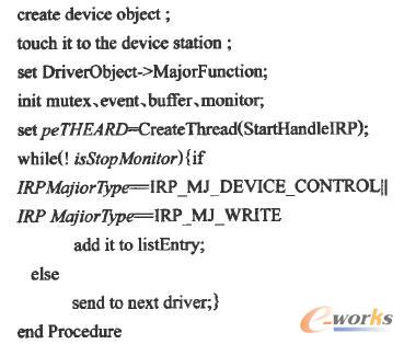 其中StartHandlelRP這個線程函數主要負責處理listEntry中的IRP包,只要listEntry不為空,就一直順序處理其中的IRP包。這樣,只要驅動監控處于啟動狀態,就能不斷截獲需要處理的IRP包置于隊列中順序處理。
