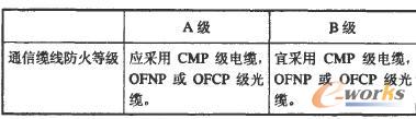 (2)在纜線豎井內的主干纜線采用敞開的方式敷設時,可選用CMR級或B2級或C級。