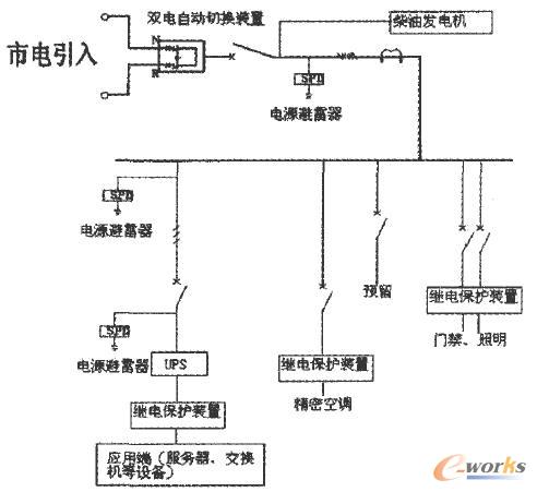 機房供電必須要有多重保護設計,主要為電源的繼電保護設計和供電的冗余設計。繼電保護故障點采集主要應針對機房內沒有連接UPS其它設備,如空調、照明設備等。主要應該在這些備的開關上安裝過流或過壓保護,以防這些設備故障的動作對其它設備電源造成干擾。
