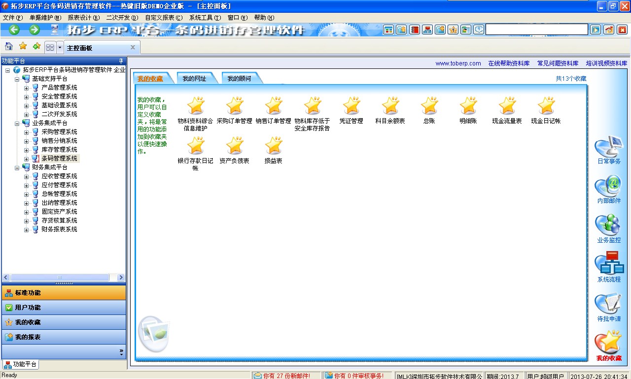 點此在線試用拓步ERP條碼系列業務企業版(條碼進銷存業務財務一體化管理軟件)