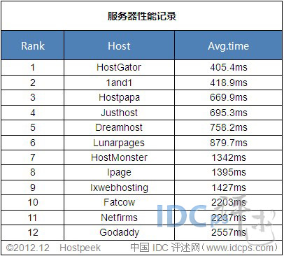 下面,IDC評述網便與大家一起關注12月份美國最佳虛擬主機提供商TOP12的各項性能測試:
