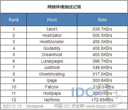 在網絡環境測試中,1and1以絕對優勢拔得頭籌,HostGator和HostMonster排名隨后。Netfirms表現最次。