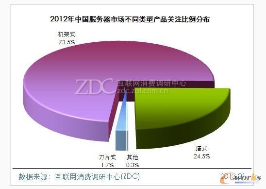 在不同類型服務(wù)器關(guān)注比例走勢上,2012年適用范圍最廣的機(jī)架式服務(wù)器產(chǎn)品為用戶關(guān)注的絕對主流,獲73.5%的關(guān)注比例。塔式服務(wù)器次之,關(guān)注比例為24.5%。刀片式服務(wù)器較低,僅為1.7%。