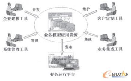 圖2 業(yè)務(wù)模型資源和業(yè)務(wù)建模工具、業(yè)務(wù)運(yùn)行平臺的關(guān)系