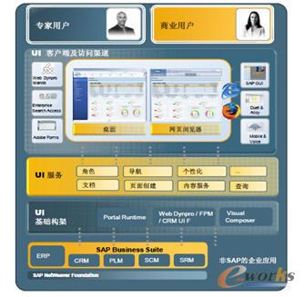 ·SAP NetWeaver Portal (Web Browser):通過按職責劃分的工作中心提供所需的應用和信息面向應用的安全和單點登錄。