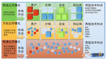 SOA的內(nèi)在核心在于將原來(lái)一個(gè)個(gè)“大塊”系統(tǒng)拆分成一個(gè)個(gè)標(biāo)準(zhǔn)接口的“小塊”系統(tǒng),把軟件變成像現(xiàn)在的積木玩具一樣,成為一個(gè)個(gè)的“小塊”(SOA把企業(yè)基本應(yīng)用封裝成一個(gè)個(gè)獨(dú)立的服務(wù),如企業(yè)中財(cái)務(wù)應(yīng)收發(fā)票的處理就是一個(gè)“小塊”),可以反復(fù)拼接,但是他們之間要有一系列共同遵循的標(biāo)準(zhǔn)(獨(dú)立服務(wù)之間的接口遵循一系列統(tǒng)一的標(biāo)準(zhǔn)),并且有一定的靈活性,可以讓企業(yè)根據(jù)自己的需要?jiǎng)?chuàng)建企業(yè)個(gè)性化的系統(tǒng),同時(shí)當(dāng)企業(yè)有新的業(yè)務(wù)需求或業(yè)務(wù)發(fā)生變化時(shí),只需再購(gòu)買(mǎi)或更換所對(duì)應(yīng)的小塊(獨(dú)立服務(wù))即可。