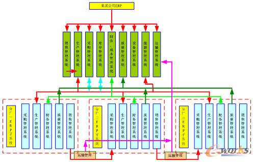 由于以上的不同,造成了該企業(yè)的ERP架構(gòu)如下圖所示:
