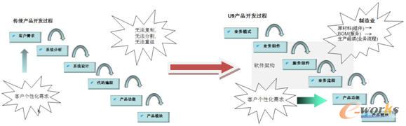 在U9的開(kāi)發(fā)過(guò)程中,用友一開(kāi)始并未直接投身于產(chǎn)品開(kāi)發(fā)當(dāng)中,而是花了半年以上的時(shí)間,從以往積累的多個(gè)客戶當(dāng)中提煉出了不同企業(yè)的商業(yè)模式,然后以商業(yè)模式為指向,來(lái)搭建U9的軟件架構(gòu)。
