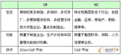 U9發(fā)布后,用友面向中大型企業(yè)就有了2個(gè)產(chǎn)品可提供:NC和U9,雖然二者都是面向中大型企業(yè)的,但各有側(cè)重點(diǎn)。