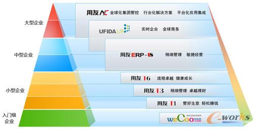 用友在發(fā)布U9之后,其產(chǎn)品線也趨于完善,如下圖所示。