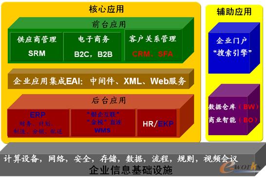 有了這樣的信息化需求就會產生一個企業信息化的愿景。圖2就是我們現在正在做的工作以及未來將要實現的信息化系統,藍色字體是已經實施的系統,紅色字體是正在構建的系統。