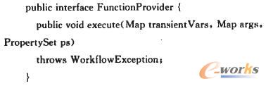 在EleFlow中,函數(shù)function是用來(lái)定義(引用)并執(zhí)行外部的商業(yè)邏輯和服務(wù),實(shí)現(xiàn)EleFlow與外部具體的應(yīng)用之間交互。當(dāng)系統(tǒng)有額外的需求和功能,例如處理“角色”、“任務(wù)分配”、“提交任務(wù)”等諸如此類的操作,就擴(kuò)展function接口。