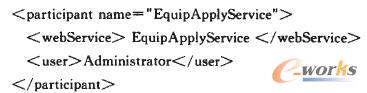 其次是流程定制階段,在工作流定制的過(guò)程中可使用流程定制工具,它提供了友好、簡(jiǎn)單的圖形化界面,以支持拖放的方式實(shí)現(xiàn)工作流定制。一個(gè)流程是由許多的活動(dòng)組成,每個(gè)活動(dòng)表示一個(gè)要執(zhí)行的功能,該功能的執(zhí)行者就叫做參與者。一個(gè)參與者有2個(gè)可能的選項(xiàng):Web服務(wù)和角色。如果是Web服務(wù),用戶選擇企業(yè)WSDL數(shù)據(jù)庫(kù)中的某一Web服務(wù);如果是角色,僅僅需要指定角色的名字。或者同時(shí)指定服務(wù)與角色。一個(gè)典型的Participant元素的定義如下: