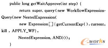 在后臺(tái)程序中,通過(guò)WorkflowExpressionQuery進(jìn)行符合條件的查詢,代碼如下(片段):
