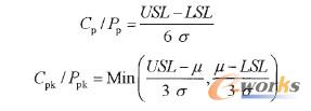 在現代工業中,為了綜合表示工藝水平滿足工藝參數規范要求的程度,廣泛采用下列數學公式分別進行過程能力指數cp和q和過程績效指數Pp和靠的計算和分析: