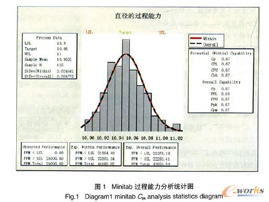 在某軸承的生產過程中,顧客允許的軸承直徑的變異范圍為(10.90,11.00),通過收集的125組數據進行過程能力分析。