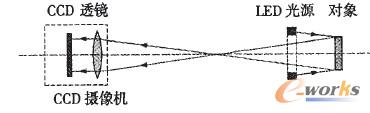 必須指出,與以上精密測量中機器視覺系統采用的透射方式(又稱“背光”方式)不同,用于表面缺陷探測時,需采取圖3所示的反射方式。