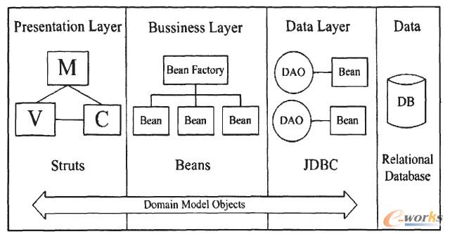 物資管理系統(tǒng)總體結(jié)構(gòu)分為三個層:表現(xiàn)層,業(yè)務(wù)層,數(shù)據(jù)層,應(yīng)用了MVC開發(fā)模式。軟件技術(shù)架構(gòu)如圖4。