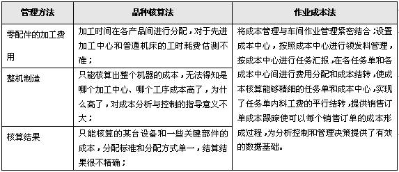 對(duì)于整機(jī)而言,以前的品種法核算模式可核算出整個(gè)機(jī)器的成本,但如果某臺(tái)機(jī)器的制造成本突然增加,則無法分析是哪個(gè)加工中心、哪個(gè)工序的成本增加了,也就無法分析增加的原因,難以達(dá)到成本分析與控制目的。隨著加工手段和工藝的不斷變革,成本核算的結(jié)果越來越難以令管理層滿意,無法有效支撐企業(yè)進(jìn)行成本分析和正確決策。