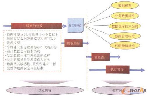 在數(shù)據(jù)中心建設(shè)過(guò)程中,要堅(jiān)持“統(tǒng)一領(lǐng)導(dǎo)、統(tǒng)一規(guī)劃、統(tǒng)一標(biāo)準(zhǔn)和統(tǒng)一組織”實(shí)施的“四統(tǒng)一”原則,結(jié)合國(guó)際最佳實(shí)踐、中國(guó)國(guó)情、企業(yè)特色及已有經(jīng)驗(yàn),推行“典型設(shè)計(jì)、試點(diǎn)先行、分步推廣”的建設(shè)實(shí)施方法(見(jiàn)圖8)。