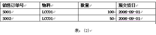 假設(shè)有如下兩筆同一物料的銷售訂單(表:2),該物料現(xiàn)有庫存=0。為簡單起見,沒有預(yù)設(shè)任何預(yù)計生產(chǎn)入庫和預(yù)計出貨的數(shù)量。