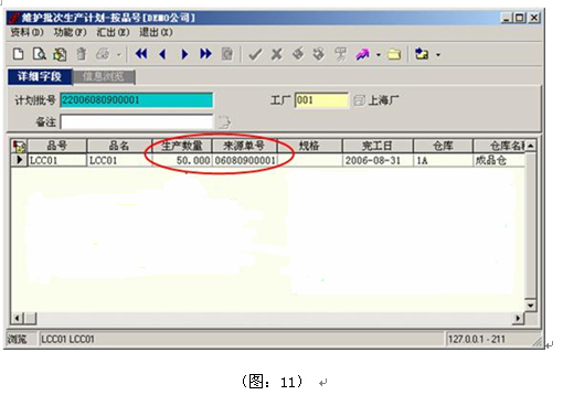 注意了,此時錯誤出現(xiàn)了,理論上NO.1已經(jīng)產(chǎn)生過生產(chǎn)訂單了,不應(yīng)該再產(chǎn)生了,但實際上易飛會再次產(chǎn)生50個計劃訂單(圖:11)。