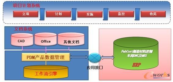 在PLM的集成產(chǎn)品項(xiàng)目研發(fā)管理模式下,將項(xiàng)目計(jì)劃、技術(shù)文檔和工作流緊密集合,實(shí)現(xiàn)對(duì)產(chǎn)品研發(fā)過(guò)程的進(jìn)度監(jiān)控,技術(shù)文檔的版本管理以及文檔流程控制,并通過(guò)ERP接口交換相關(guān)數(shù)據(jù).