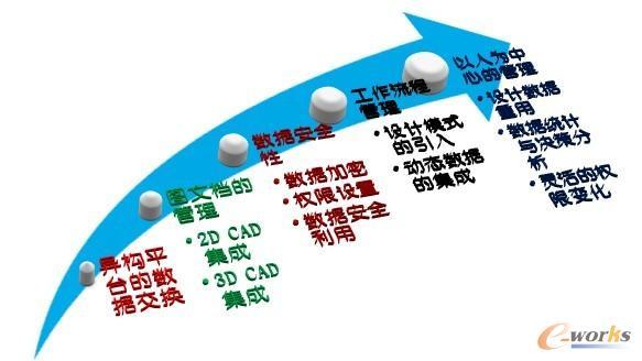 上文我們說(shuō)到PDM時(shí)PLM系統(tǒng)的基礎(chǔ),因此要實(shí)現(xiàn)PLM思想就必須擴(kuò)大PDM所管理的數(shù)據(jù)范圍,解決一系列與產(chǎn)品數(shù)據(jù)的生成和使用有關(guān)的應(yīng)用軟件(如CAD/CAE/CAM/CAPP/EDA、 ERP/SCM/CRM)之間的集成接口問(wèn)題,有效的支持遠(yuǎn)程數(shù)據(jù)訪問(wèn)和異地協(xié)同,并實(shí)現(xiàn)對(duì)數(shù)據(jù)的管理和對(duì)人的管理的協(xié)調(diào)統(tǒng)一。