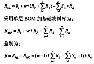 如果依據(jù)產(chǎn)品族派生出的w個產(chǎn)品(含有vi 存在 Svi個),采用多層BOM的記錄數(shù)量為: