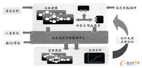 信息技術的發展是協同商務的技術基礎,企業內的工作流逐漸拓展到了跨組織的工作流。協同商務環境下的業務管理,已不單是從技術上實現業務流程的互聯問題,而是要設計新的概念和結構體系,使協同商務環境下的BPMS能夠真正支持提高整個價值鏈的效率、促進合作各方的關系和提高整個工作流的柔性。我們設計的這套框架從現有的一些BPM產品中抽象、提煉而來,采用這套框架開發得出的產品能在標準性、通用性、 開放性、靈活性等方面有效地滿足這些要求。