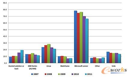 通過下面的圖可以了解來自制造業企業的TEC Advisor的用戶為了今后的ERP系統傾向于選擇哪些服務器