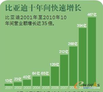 圖1 比亞迪2001年至2010年10年間營業額增長近35倍