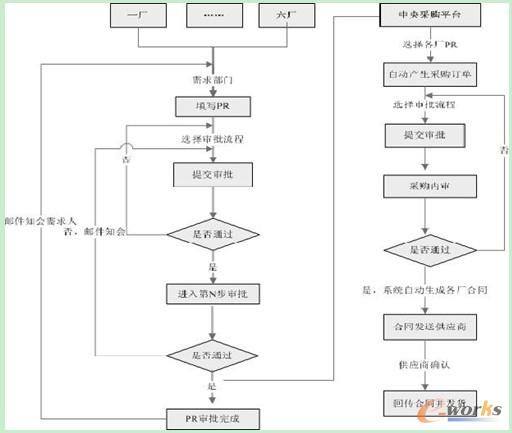縱觀目前PCB 行業(yè),至今尚未有可供參考的其他集團(tuán)化(多工廠)的信息平臺(tái)處理解決方案(Oracle,SAP 等大型信息管理系統(tǒng)供應(yīng)商可以提供,但成本高昂),基于現(xiàn)狀,結(jié)合事業(yè)部中央采購(gòu)實(shí)際運(yùn)作狀況,信息中心通過(guò)多次需求調(diào)研、流程分析以及研究開(kāi)發(fā)架構(gòu),充分思索和運(yùn)用BPR(業(yè)務(wù)流程重組)的理論,最終架構(gòu)出中央采購(gòu)平臺(tái)運(yùn)作模式的電子化解決方案。