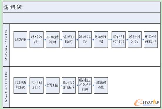 針對(duì)舊ERP 系統(tǒng)無(wú)法和財(cái)務(wù)金蝶K3 對(duì)接的弊端,以及采購(gòu)商務(wù)純手工作業(yè)的模式,在2010 年5 月份由采購(gòu)商務(wù)統(tǒng)籌,信息中心規(guī)劃,聯(lián)合財(cái)務(wù)端共同開(kāi)發(fā)和實(shí)施了新應(yīng)付系統(tǒng)模塊。將原先采購(gòu)商務(wù)的手工機(jī)械作業(yè)轉(zhuǎn)換成系統(tǒng)化作業(yè),流程簡(jiǎn)化且精準(zhǔn)(詳見(jiàn)圖6),在實(shí)現(xiàn)采購(gòu)端和財(cái)務(wù)端責(zé)權(quán)分離,相互制約的同時(shí),將原先4 個(gè)人對(duì)帳的工作改善為2 個(gè)人對(duì)帳,效率提升進(jìn)一倍。