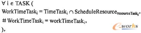 對于任意一個工序i,工序實際加工時間長度workTimeTaski等于該工序所需資源的可工作時間ScheduleResourceresourceTaski;和該工序加工時間區間TimeTaski交集WorkTimeTaski的長度。復雜的工作日歷約束在NCL中高度簡潔的描述如下。