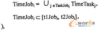 訂單i的加工時間TimeJobi是該訂單的所有工序的加工時間集合TimeTask之并,要求TimeJobi在給定的開工時間tlJobi和完工時間t2Jobi之間。