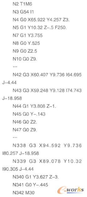 下面是根據以上步驟,輸出的該模型的NC程序。