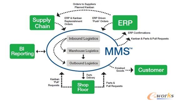 UniMax MMS支持生產物流中大多數的JIT物料同步配送方式,包括看板、Andon拉動,按生產順序的臺套和序列配送等,同時支持標準庫內作業和物料分揀。借助于開放式和前瞻性設計,UniMax MMS 同時也支持供應鏈及配送中心的物料及物流管理業務。