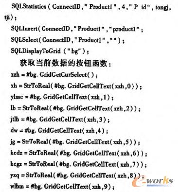 力控提供了一組sQL函數.可以在腳本語言中調用SQL函數對ODBc數據庫(DBMs)進行操作。用sQL函數可以進行插人、查詢、更新及刪除等操作,所有sQL函數均為同步執行方式,在sQL函數執行返回前.運行系統VlEw不執行其他操作。添加原料信息按鈕的腳本函效為: