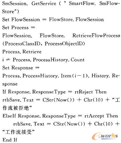 SmarTeam擁有強(qiáng)大的二次開發(fā)接口API函數(shù),在利用VB6.0的基礎(chǔ)上,編制開發(fā)了工作流反饋優(yōu)化系統(tǒng)。首先,通過工作流捕捉來獲取其最新狀態(tài),然后,根據(jù)優(yōu)化系統(tǒng)工作流程來確定如何通知相關(guān)人員,最后,相關(guān)人員在收到系統(tǒng)通知提醒后打開工作流,掌握工作流流程狀態(tài),為相關(guān)工作做好準(zhǔn)備并及時(shí)完成任務(wù)。